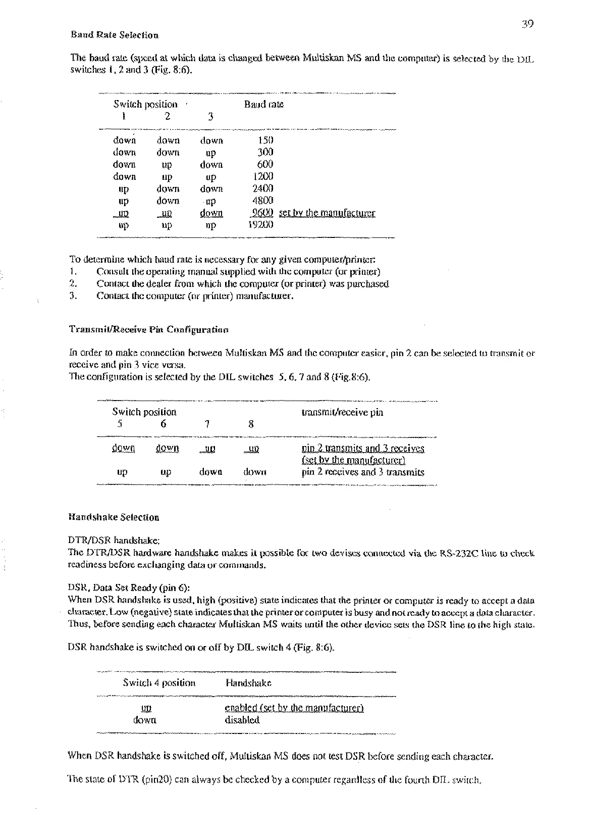 cortfiguration is selected by the DL switches