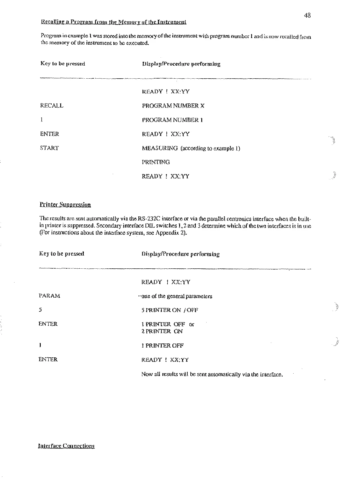 (For instructions about the interface system,