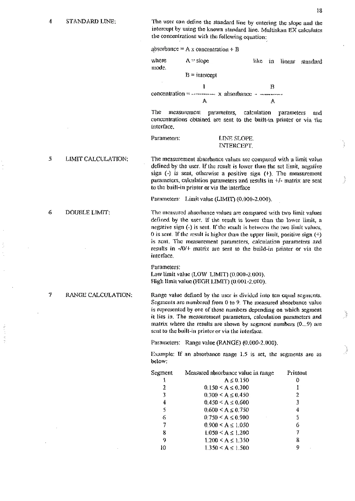 Segment Measured absorbance valne in range Printout
