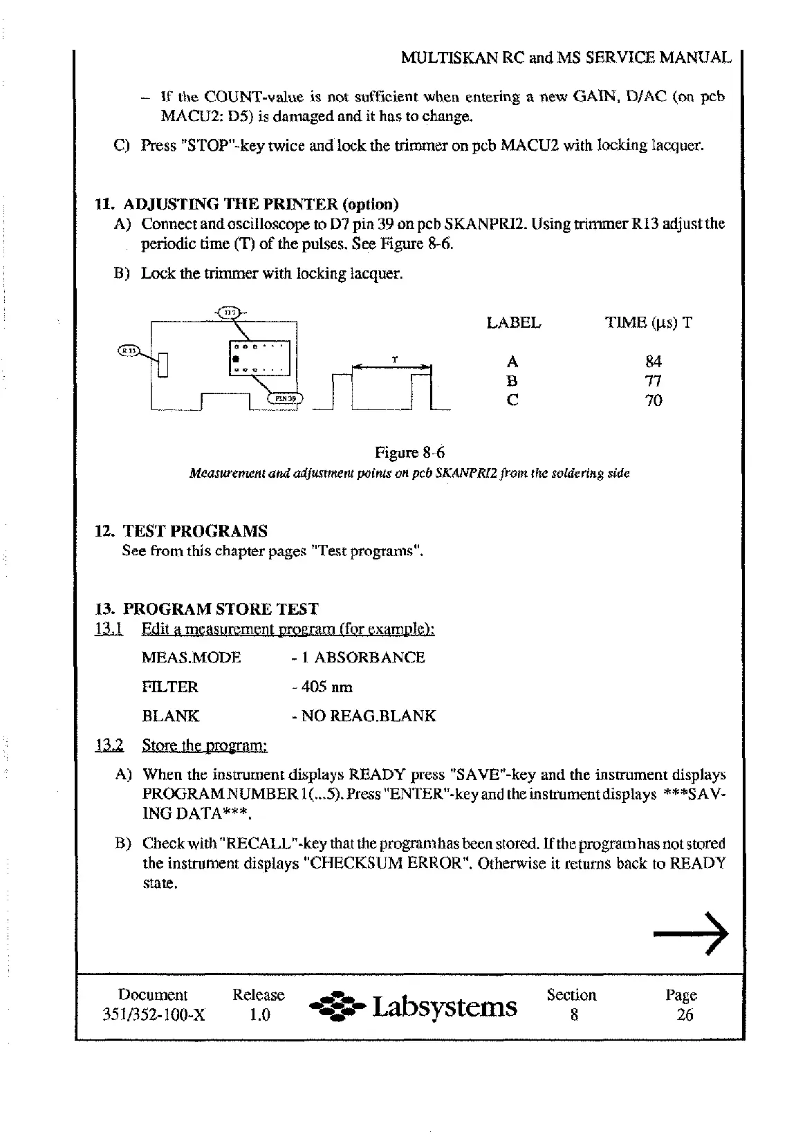 See from this chapter pages "Test programs".