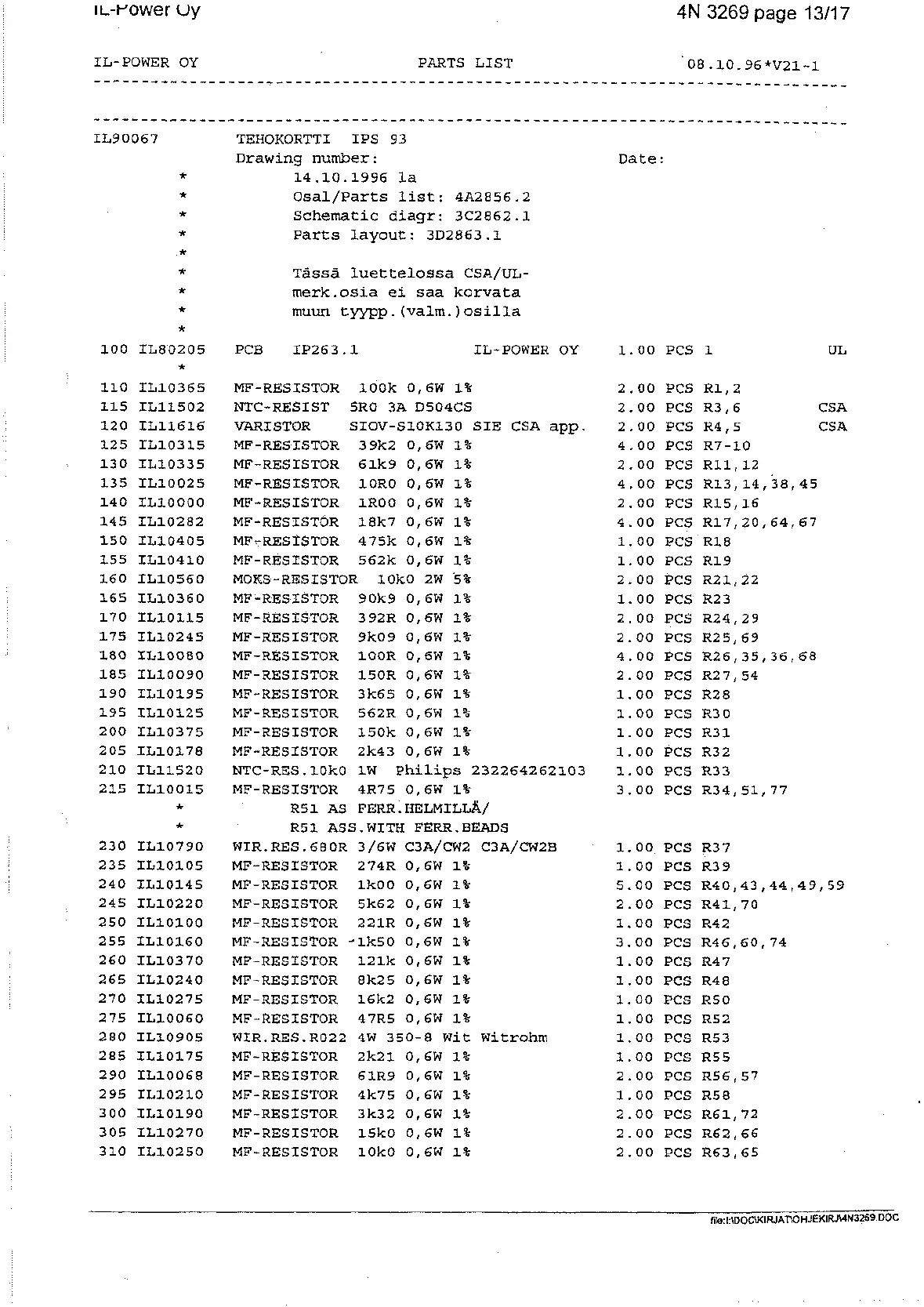 IL-POWER OY PARTS LIST 08.10.96*V21-1