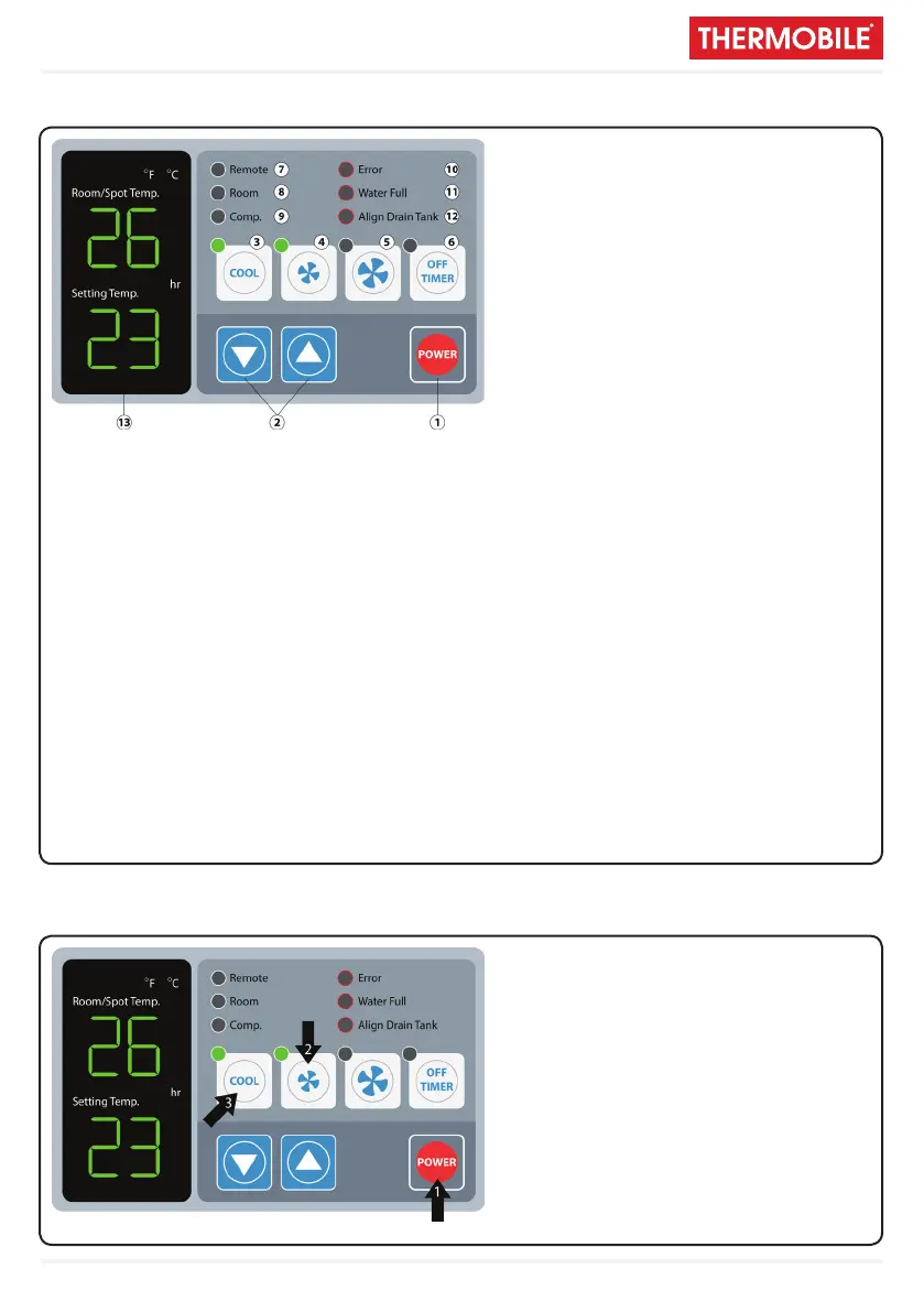 13. Display : Zeigt Raum-/Punkttemperatur an, sowie