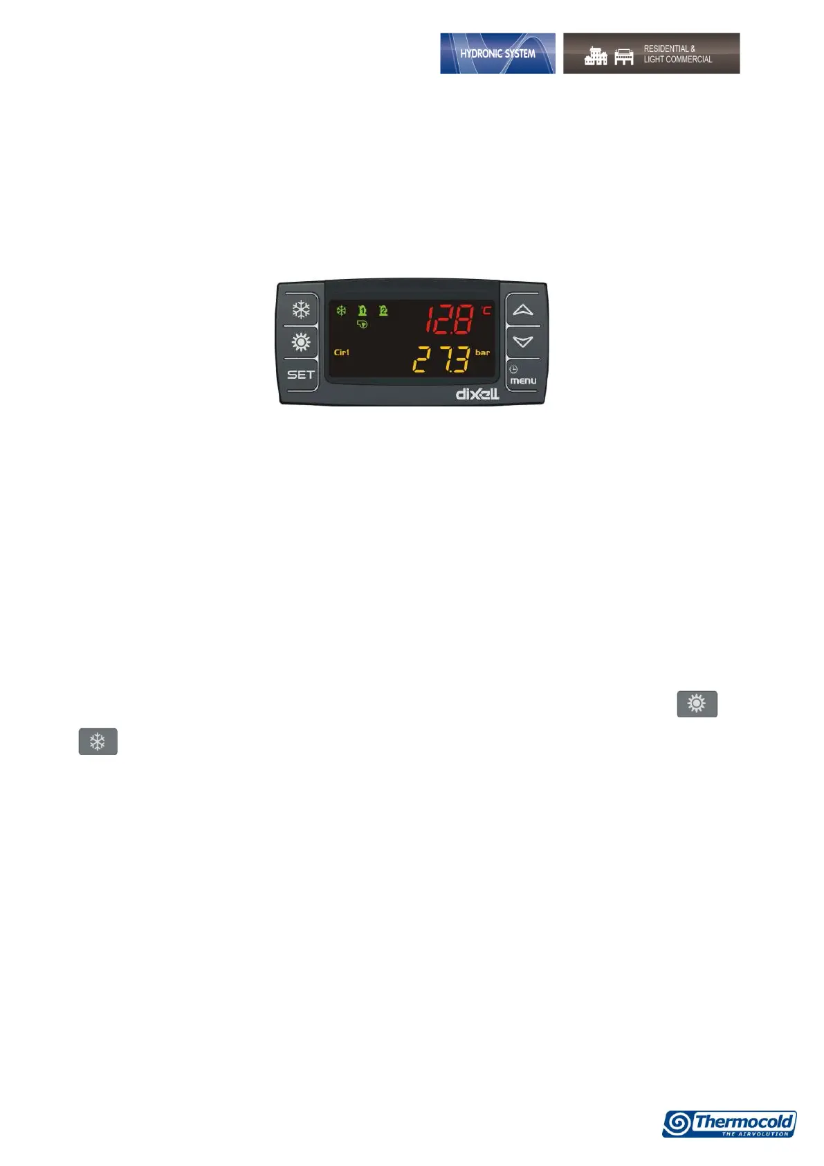 The display shows OnC when the unit is on and chiller, OnH when the unit is turned on in heat pump and