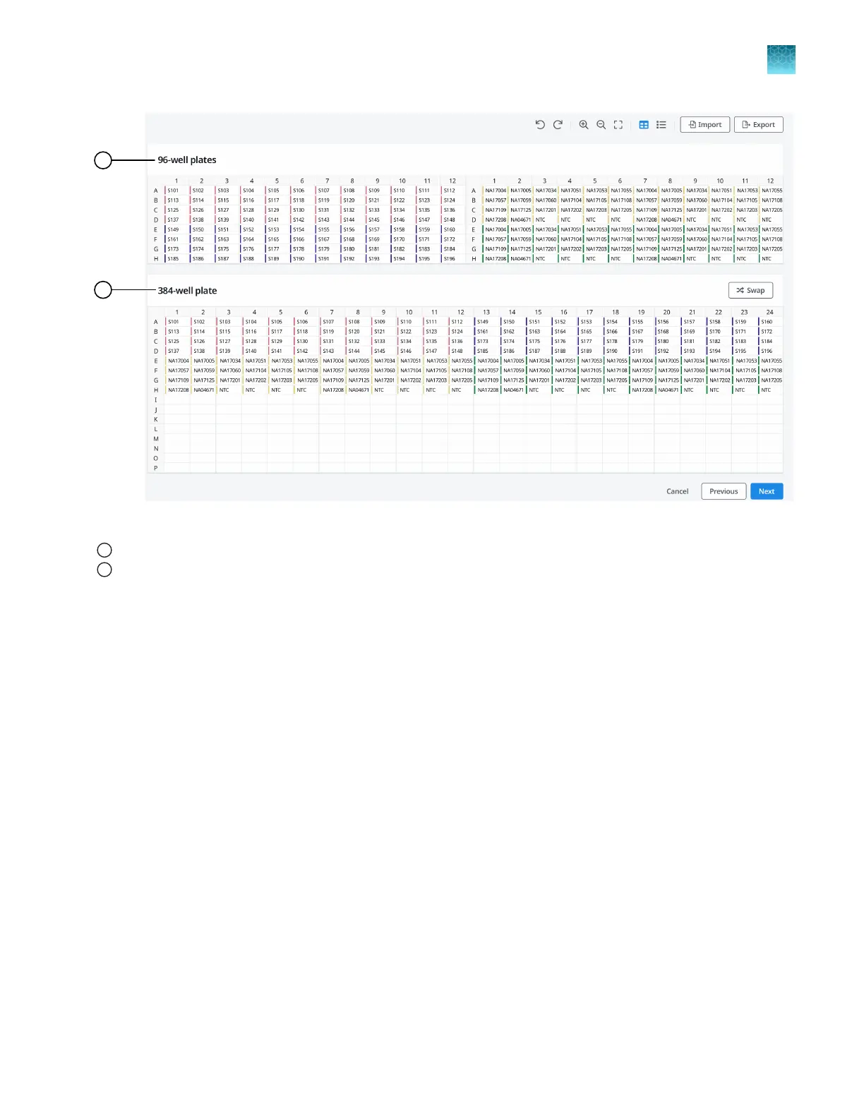 The sample plates are color-coded based on the section of the sample plate.
