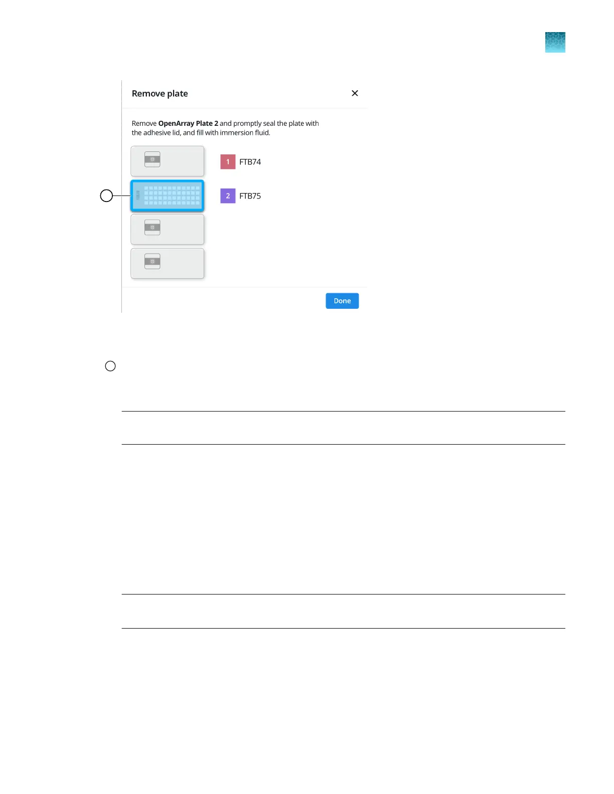 Plate to remove from the instrument