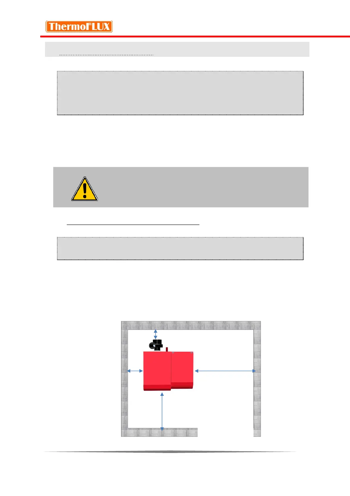 boiler measured from the flue gas fan. Distance in front of the boiler must be