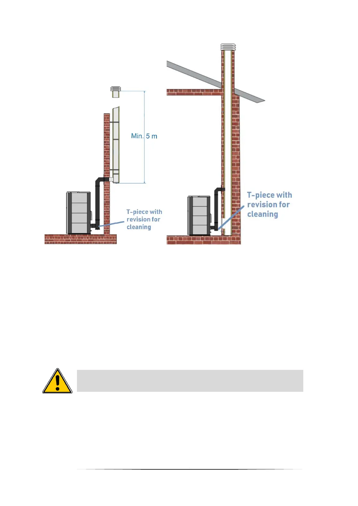 The connection to the chimney should be made with a maximum of two exhaust pipes.