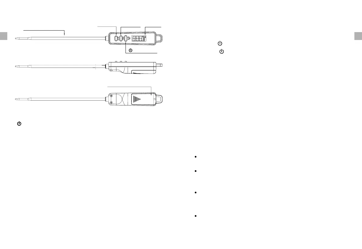 2. Button: Press once to turn ON the unit. Press again to switch