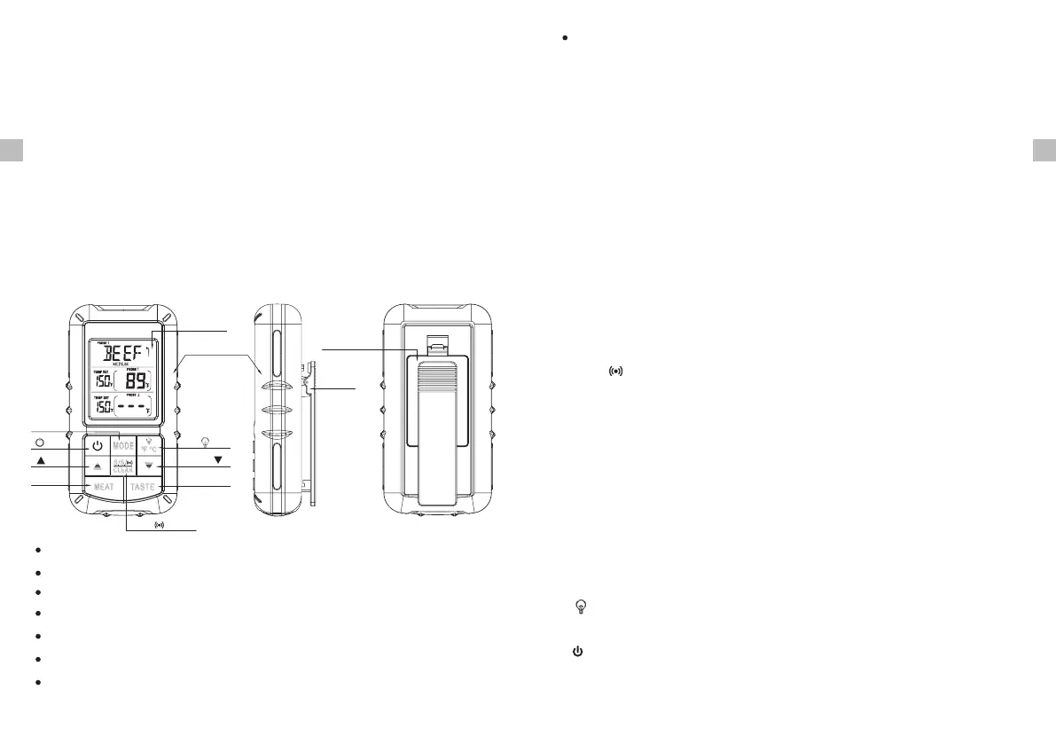 6. TASTE – In thermometer mode, press to select the meat taste level: RARE,