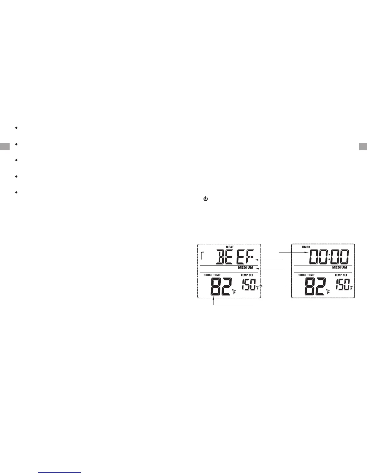 5. MEAT (CARNE)– In modalità termometro, premere per