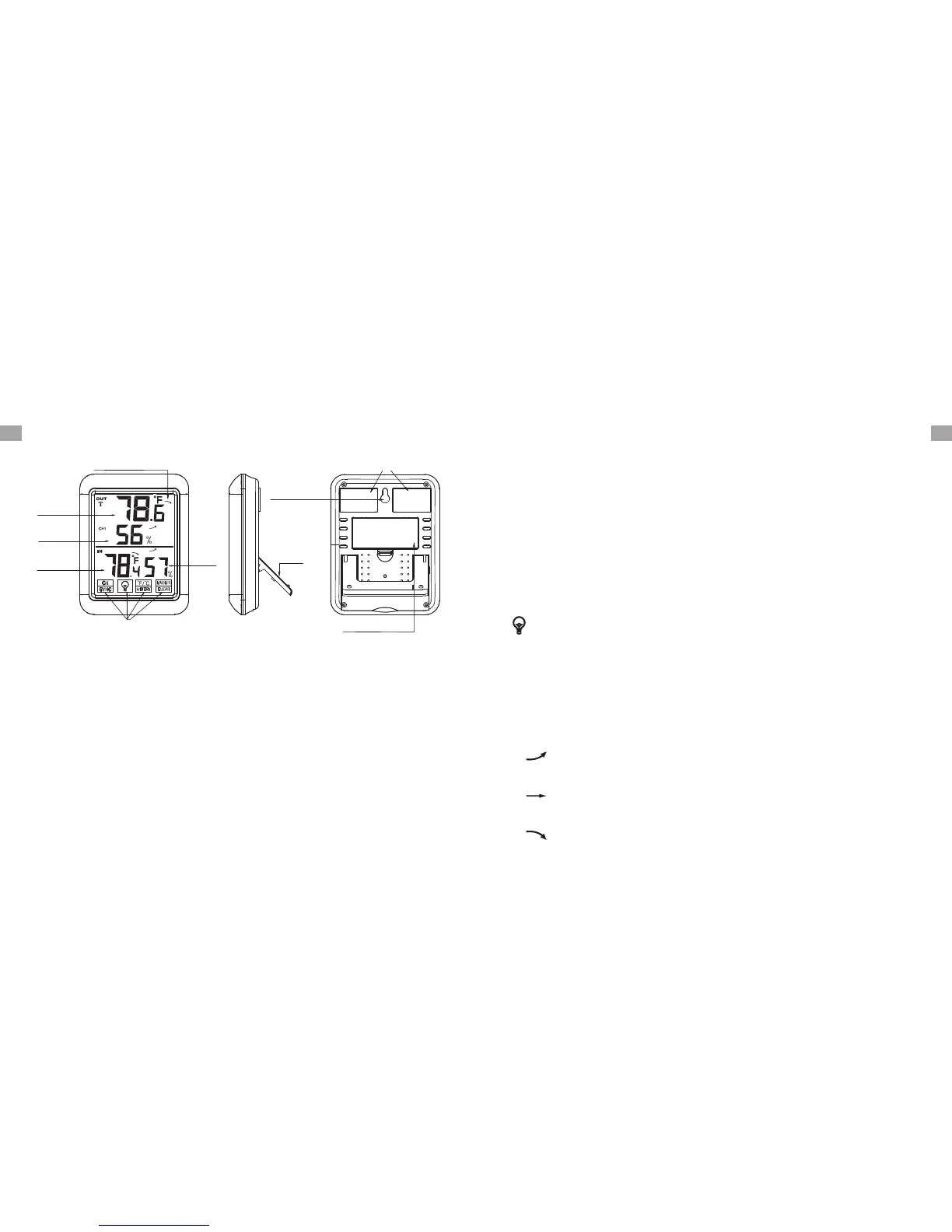 Temperatur und Feuchtigkeit anzeigt. Drücken Sie diese Taste