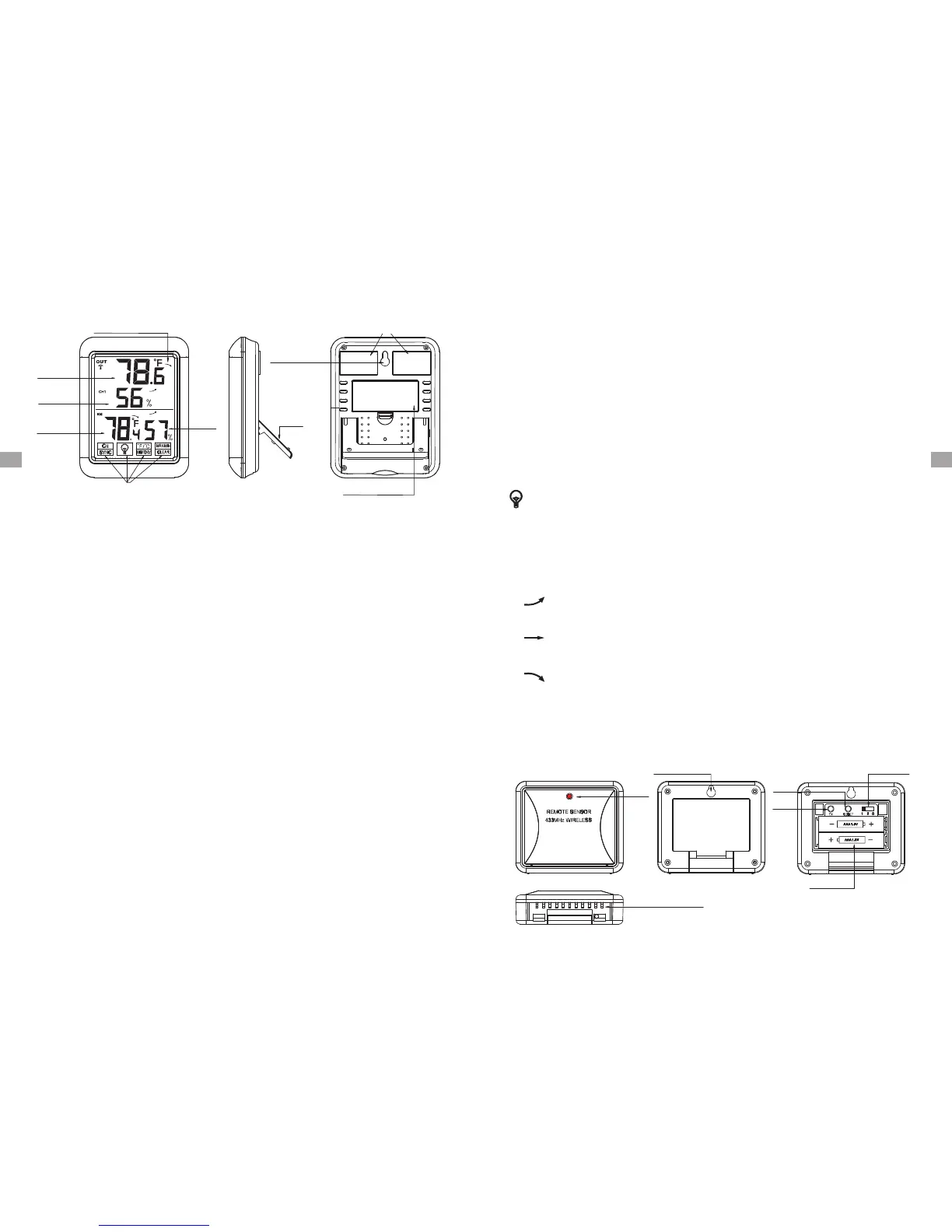 1. Display LCD: visualizza l'attuale umidità/temperatura esterne