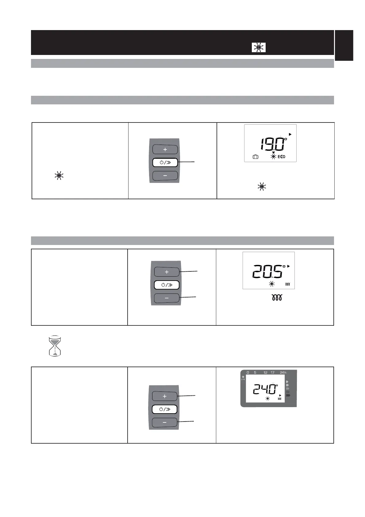 Ce mode vous permet d’avoir la température ambiante souhaitée dans la pièce. Les voyants de l’indicateur de consom-