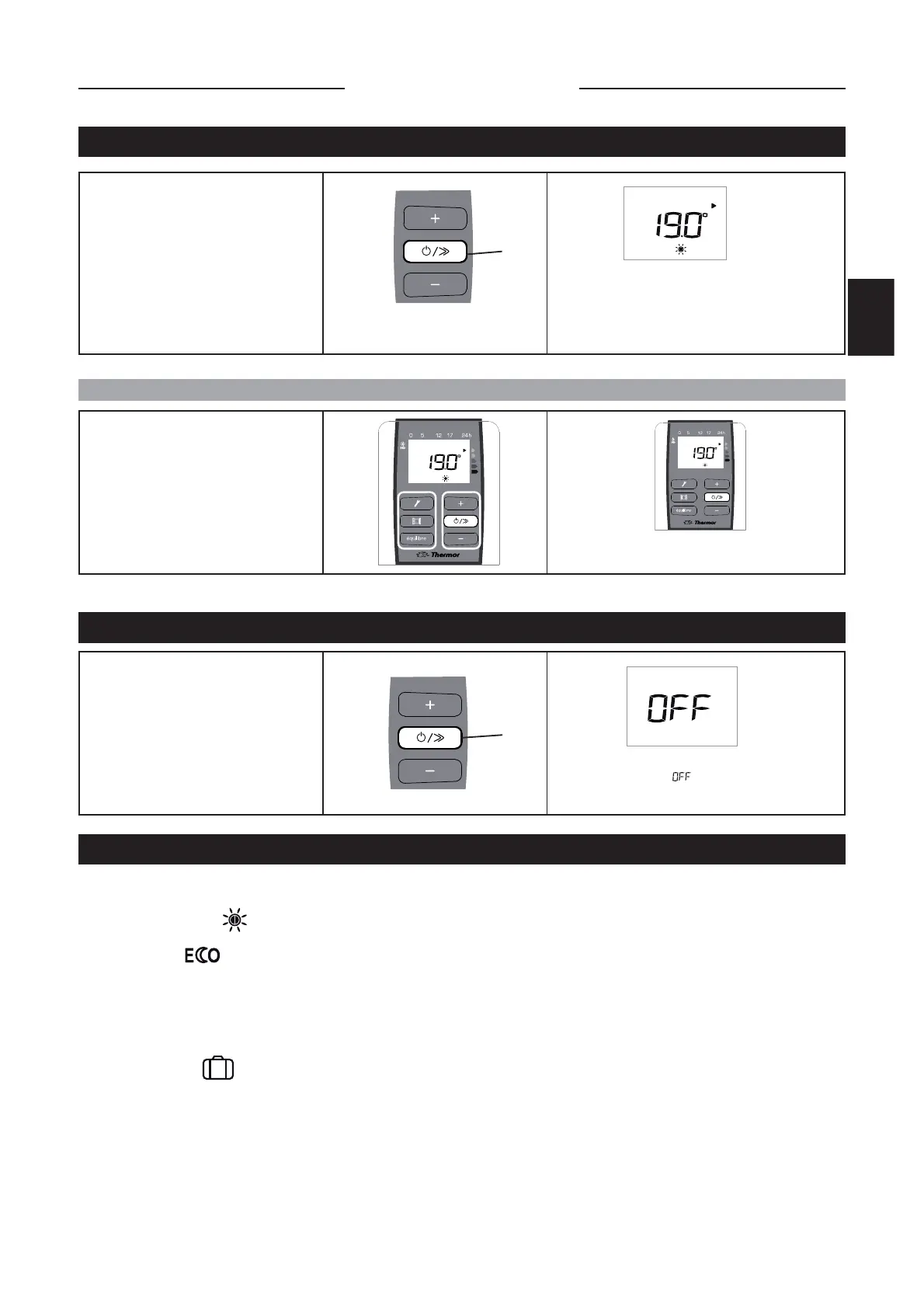 - Eco mode ( ) which enables you to lower the temperature in your room when you will be away from your home
