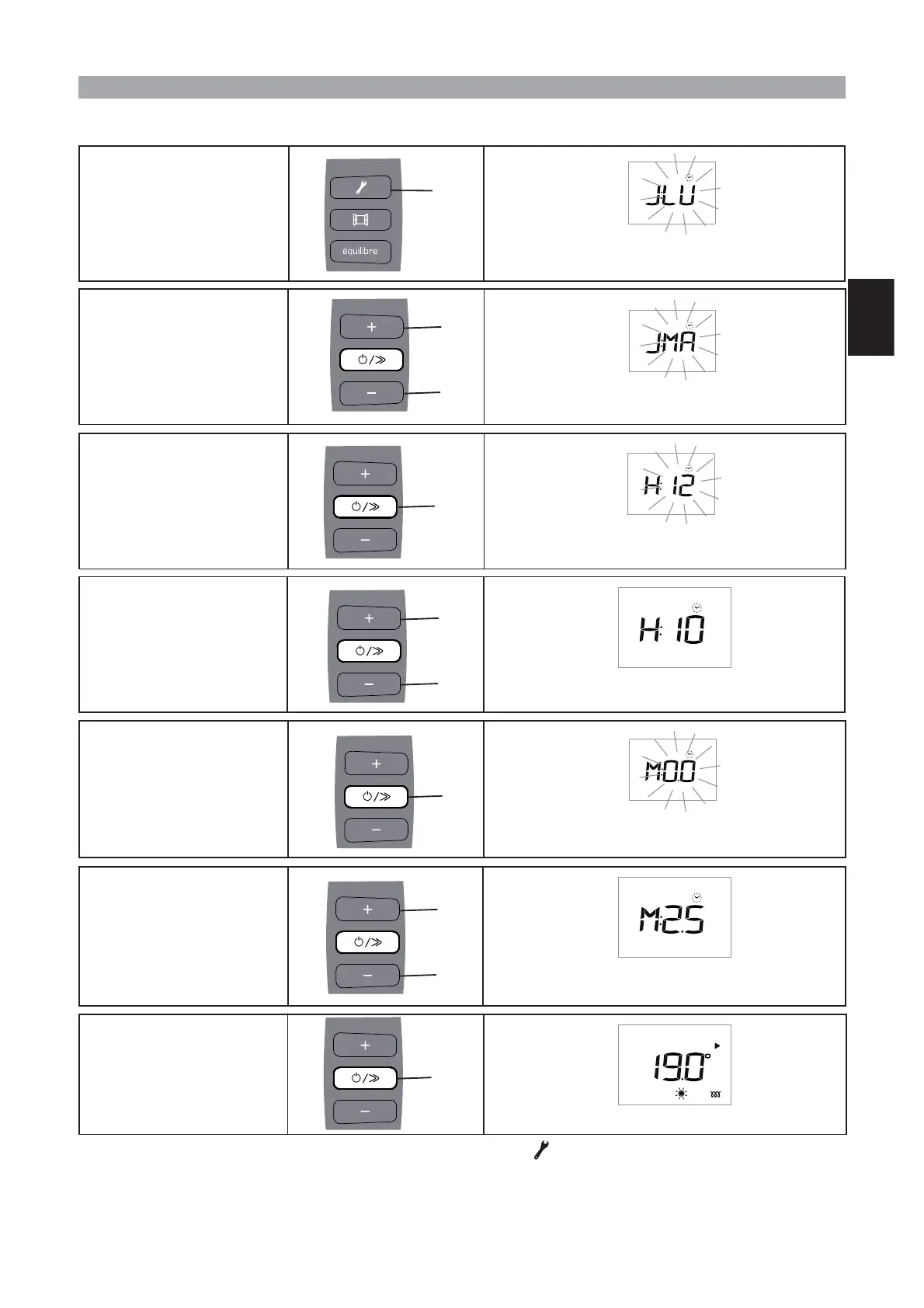 N.B.: You can exit the settings at any time by pressing the Programming key (C).