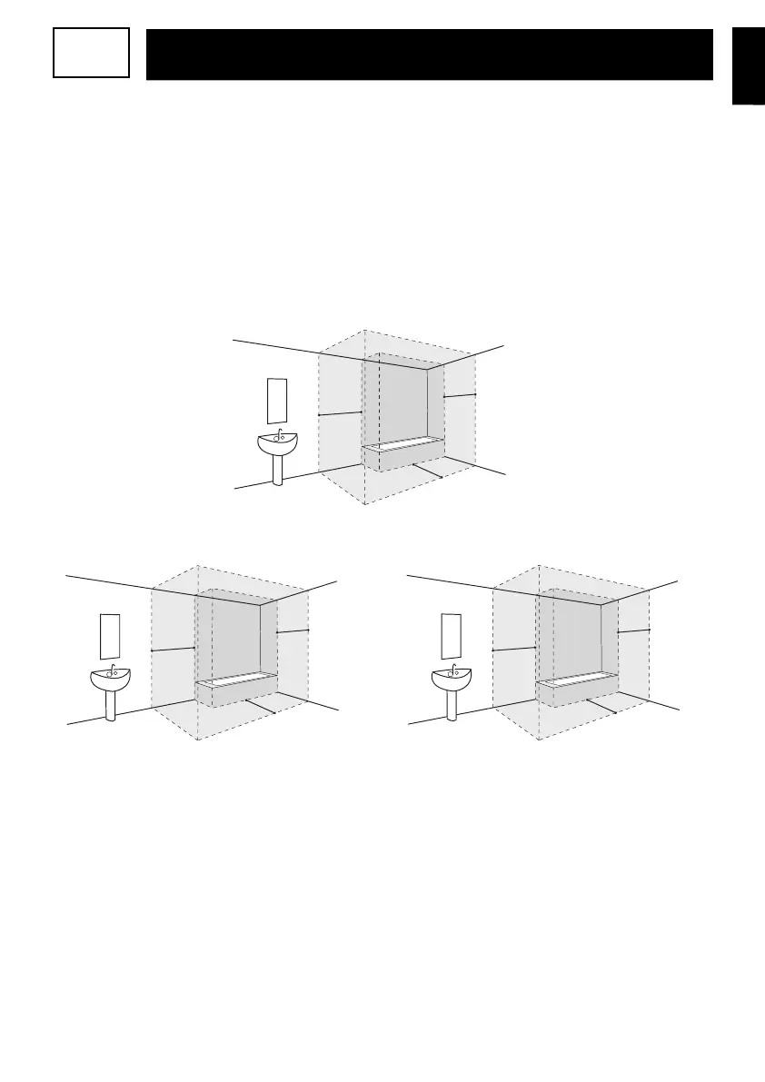 Kui vannitoa mõõtmed ei võimalda paigaldada boilerit väljapoole piirkondi1 ja 2: