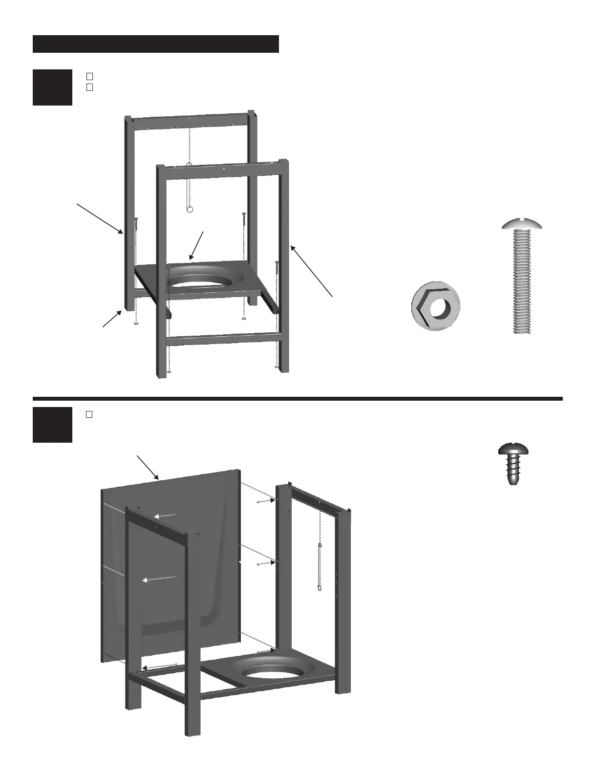 Attach to right and left leg assemblies with 1/4 -20x1-1/2" screws and 1/4 -20 flange nuts." "