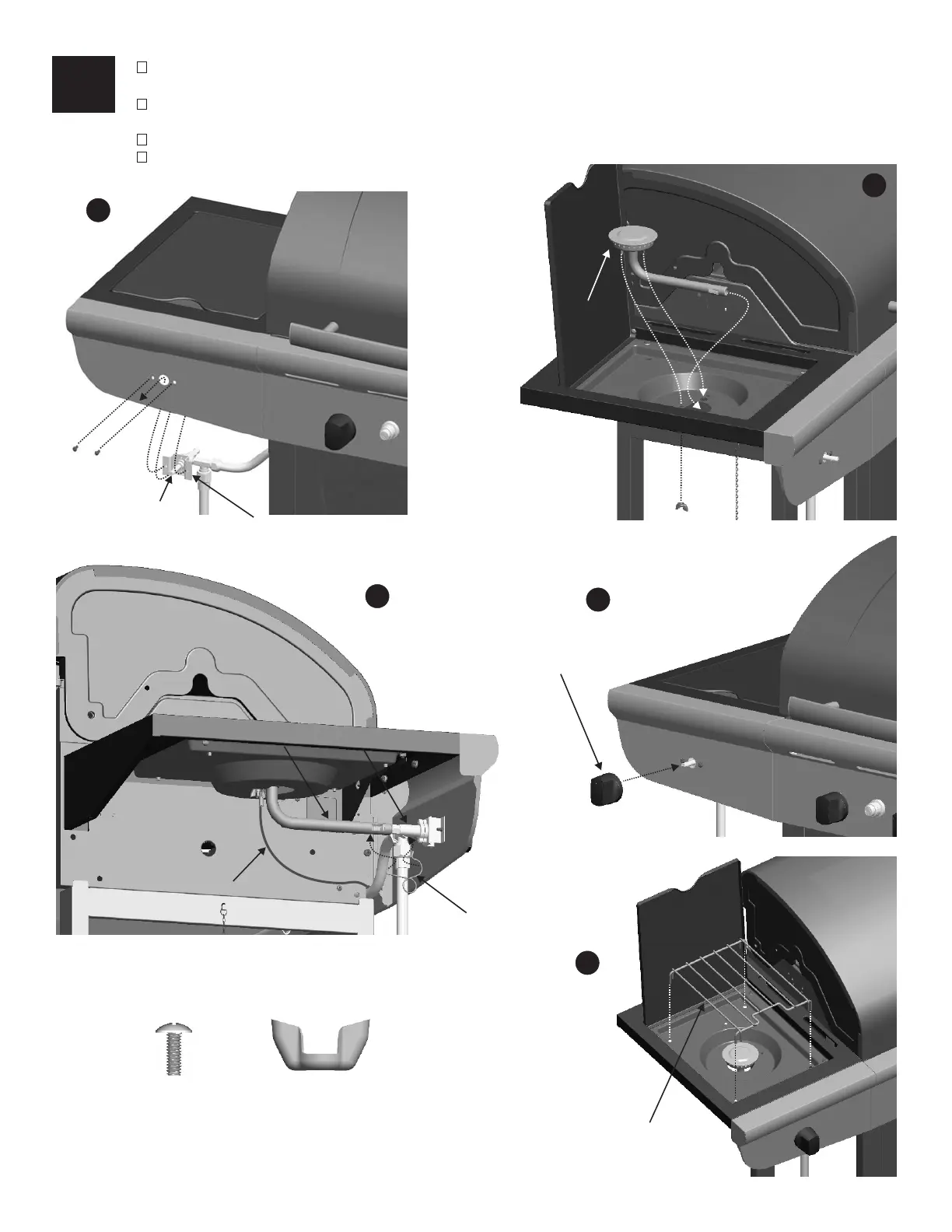 Place side burner into shelf. Make sure valve is inside side burner tube (C). Attach side burner with wing nut (B). Hook