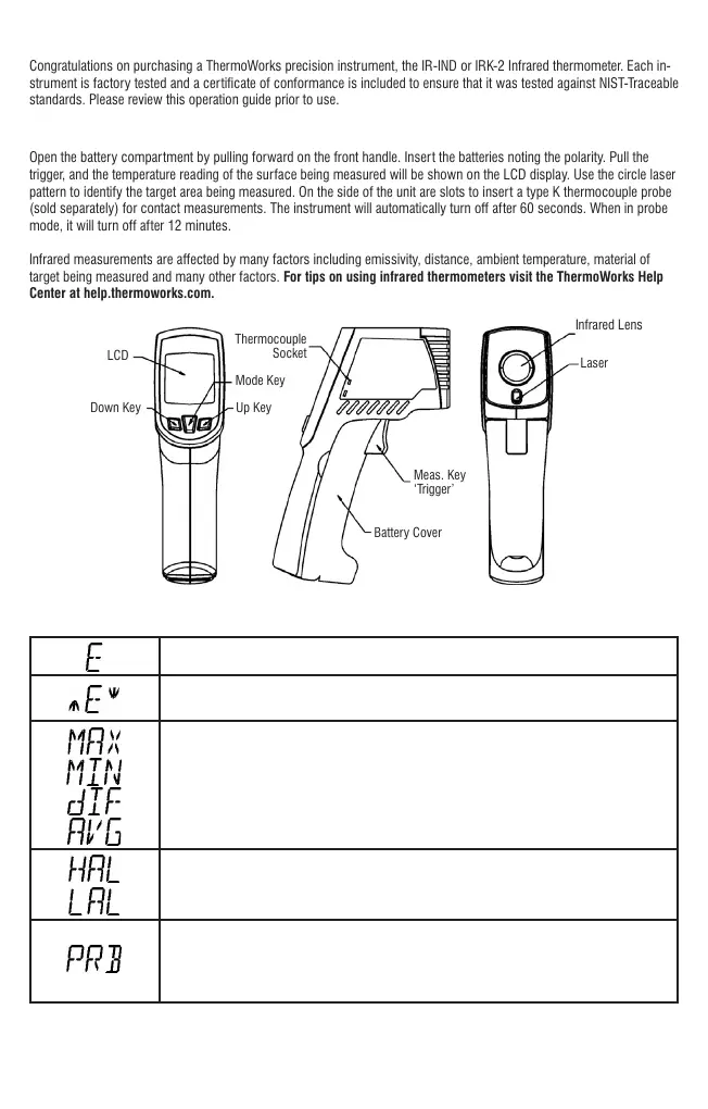 Congratulations on purchasing a ThermoWorks precision instrument, the IR-IND or IRK-2 Infrared thermometer. Each in-