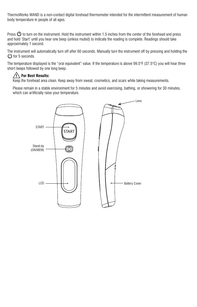 ThermoWorks WAND is a non-contact digital forehead thermometer intended for the intermittent measurement of human