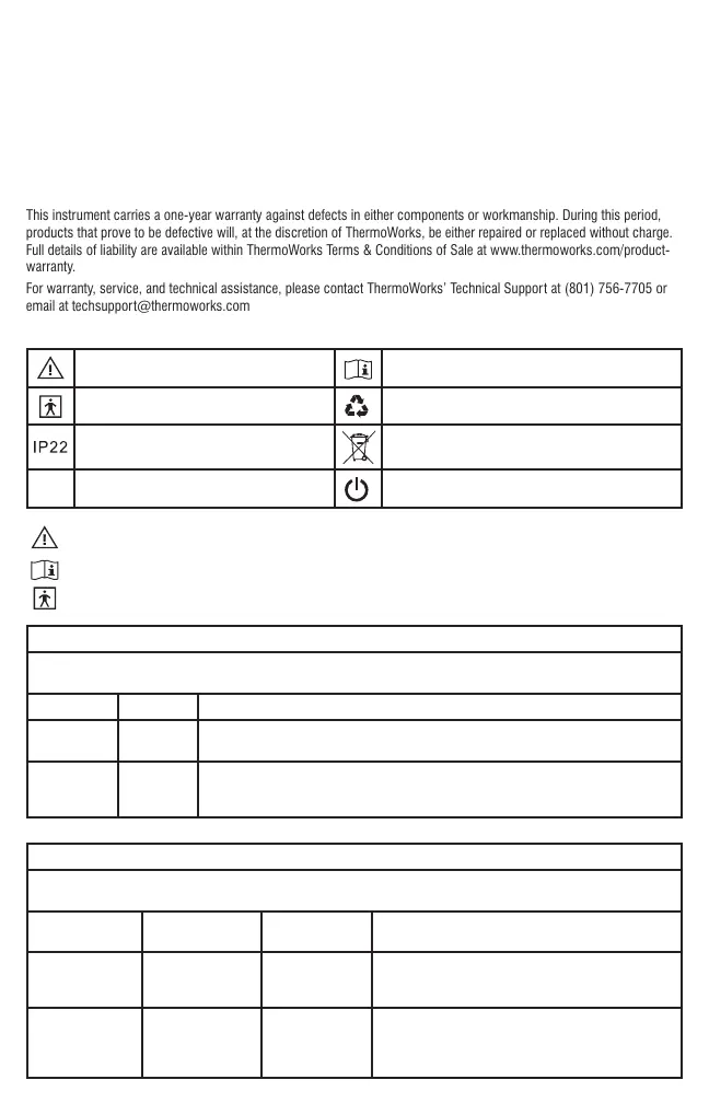 For warranty, service, and technical assistance, please contact ThermoWorks’ Technical Support at (801) 756-7705 or