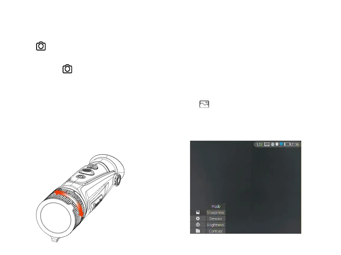 Press to take photos. Then the photo icon in