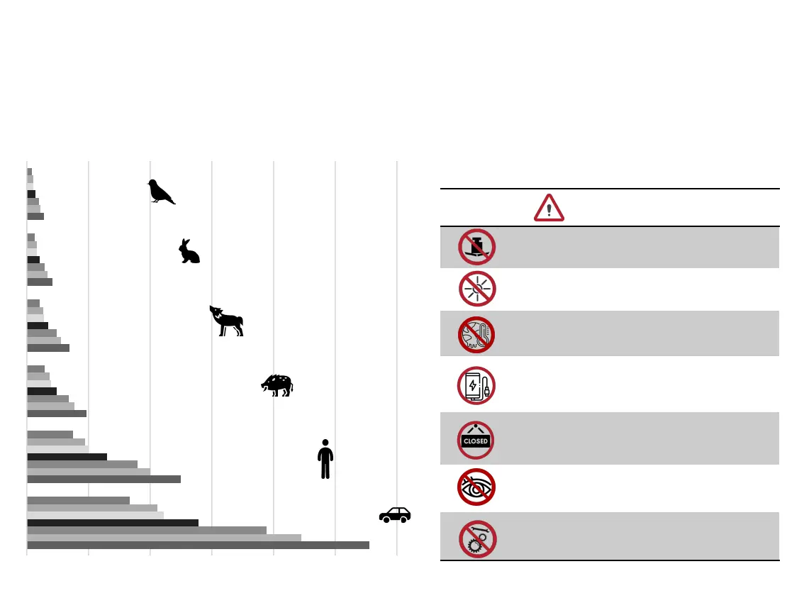 a man of 1.8m tall, a wild boar of 0.7m tall, a wolf of 0.5m