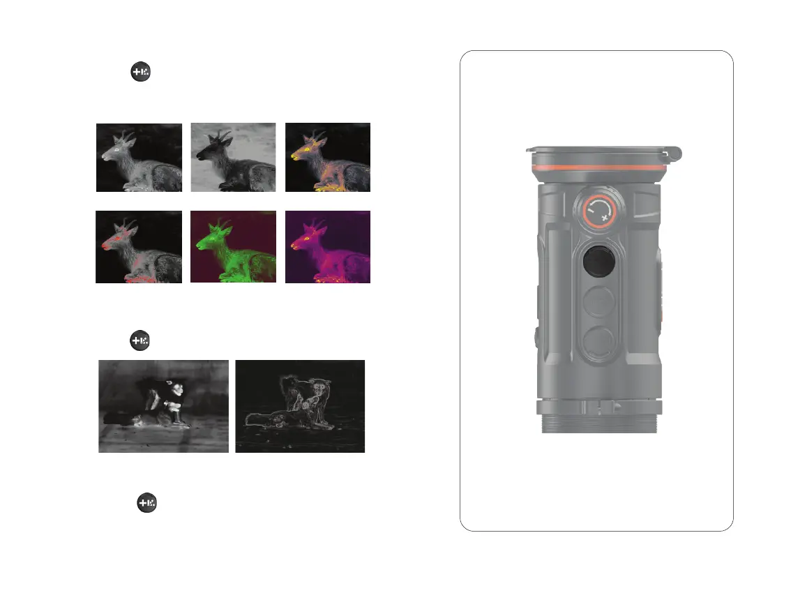 pseudo colors (white hot, black hot, red hot, green, golden, violet)