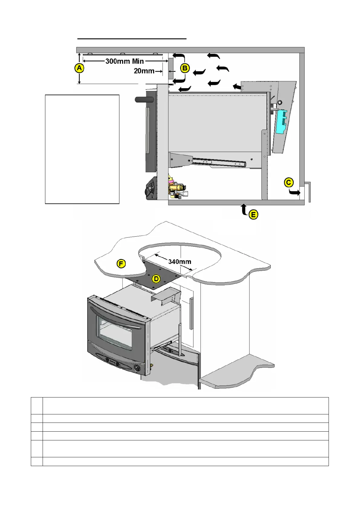 When installed above fridge the shelf MUST be sealed to prevent unburnt gas from