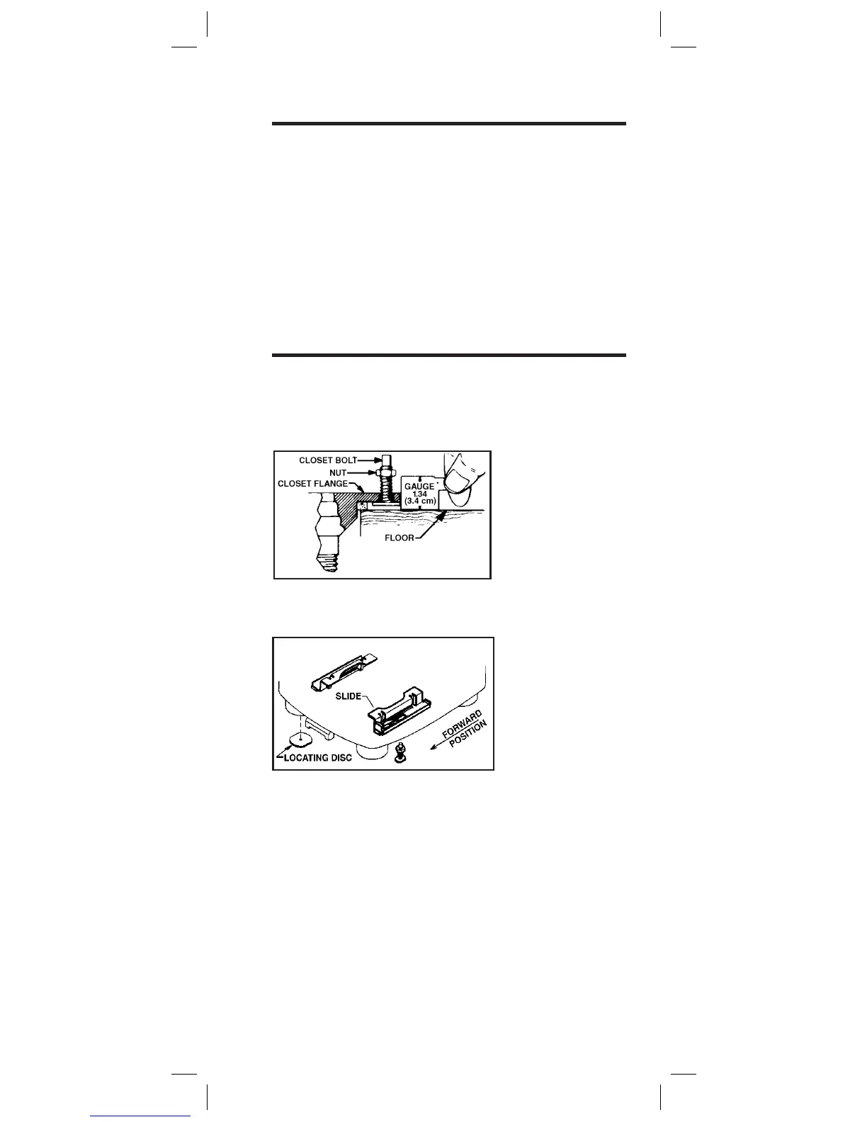 1. Install the two closet bolts in closet ange.