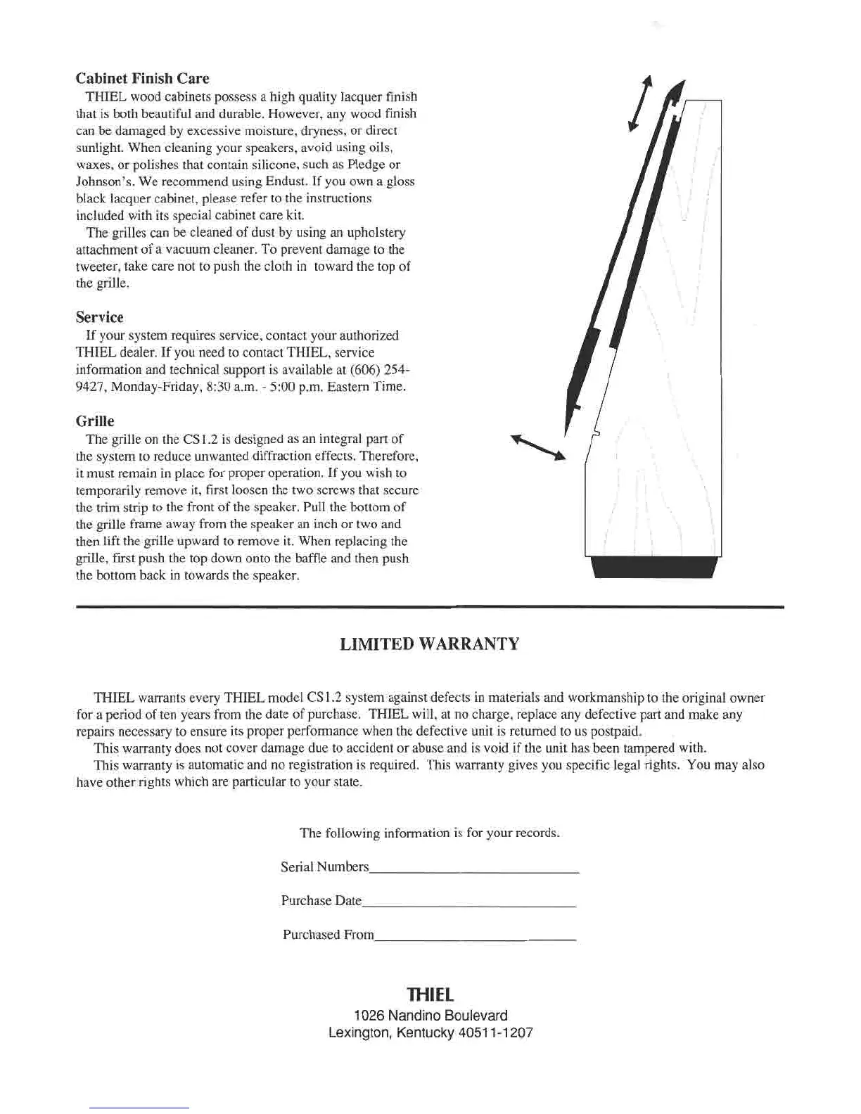 THIEL warants every THIEL model CSl.2 system against defecis in materials and workmanship