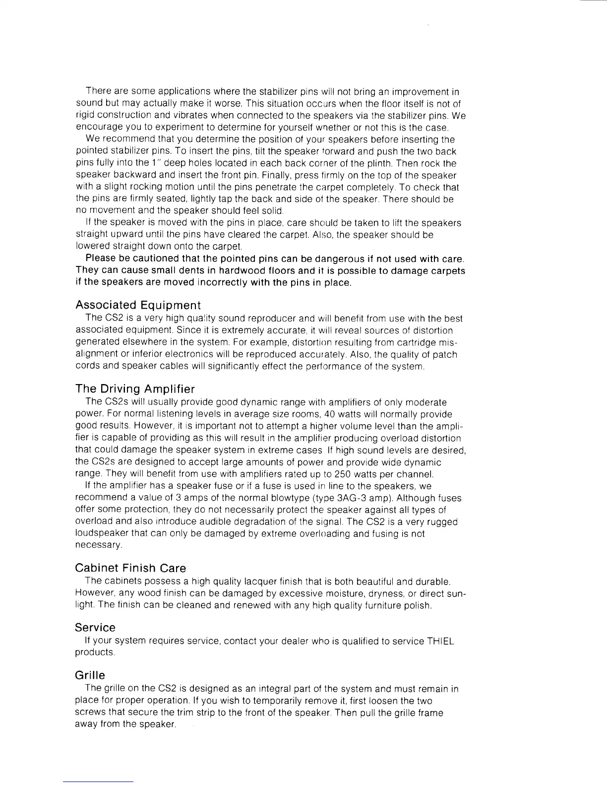 Thiel CS 2 - Associated Equipment; Importance of Quality Associated Equipment; The Driving Amplifier; Amplifier Power Requirements