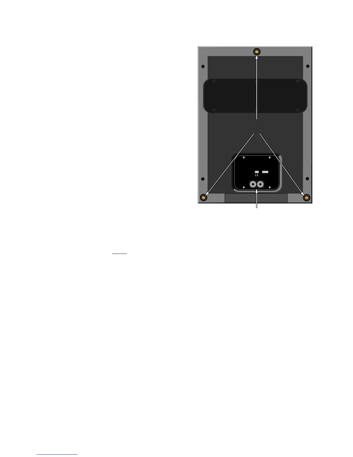 three pre-drilled holes in the base under each speaker. The pin point penetrates the carpet and allows the speaker to rest