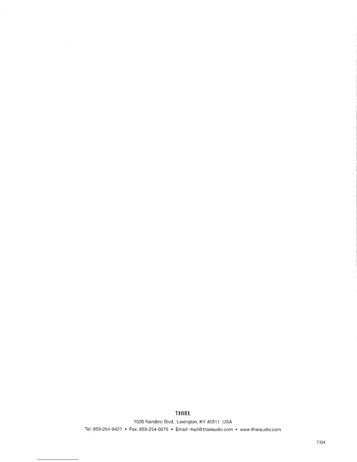 859-254-9427 Fax: 859-254-0075 Email: mail@thielaudio.com www.thielaudio.com