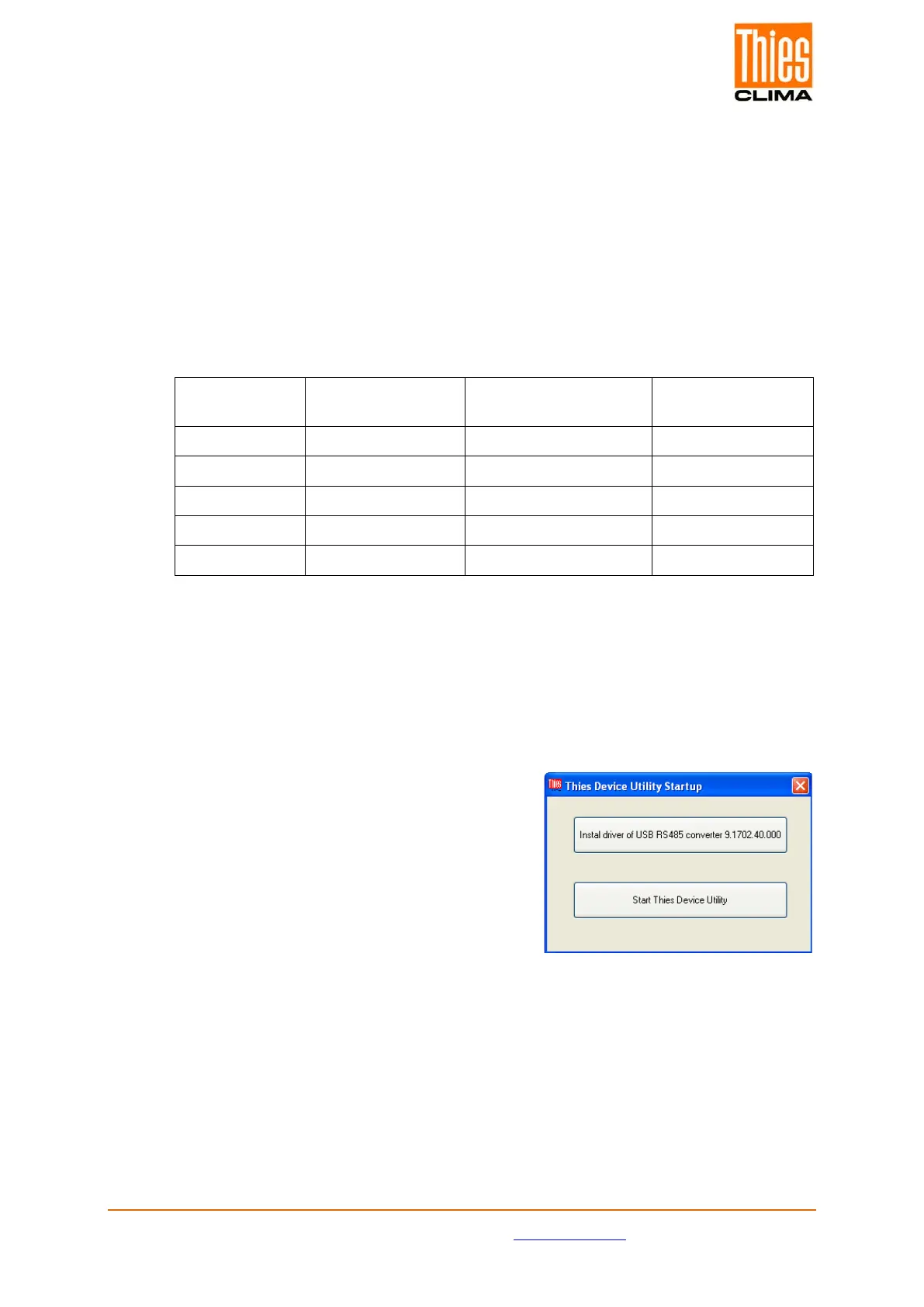9. For starting the program “ThiesDeviceUtility.exe” select the button “Start Thies