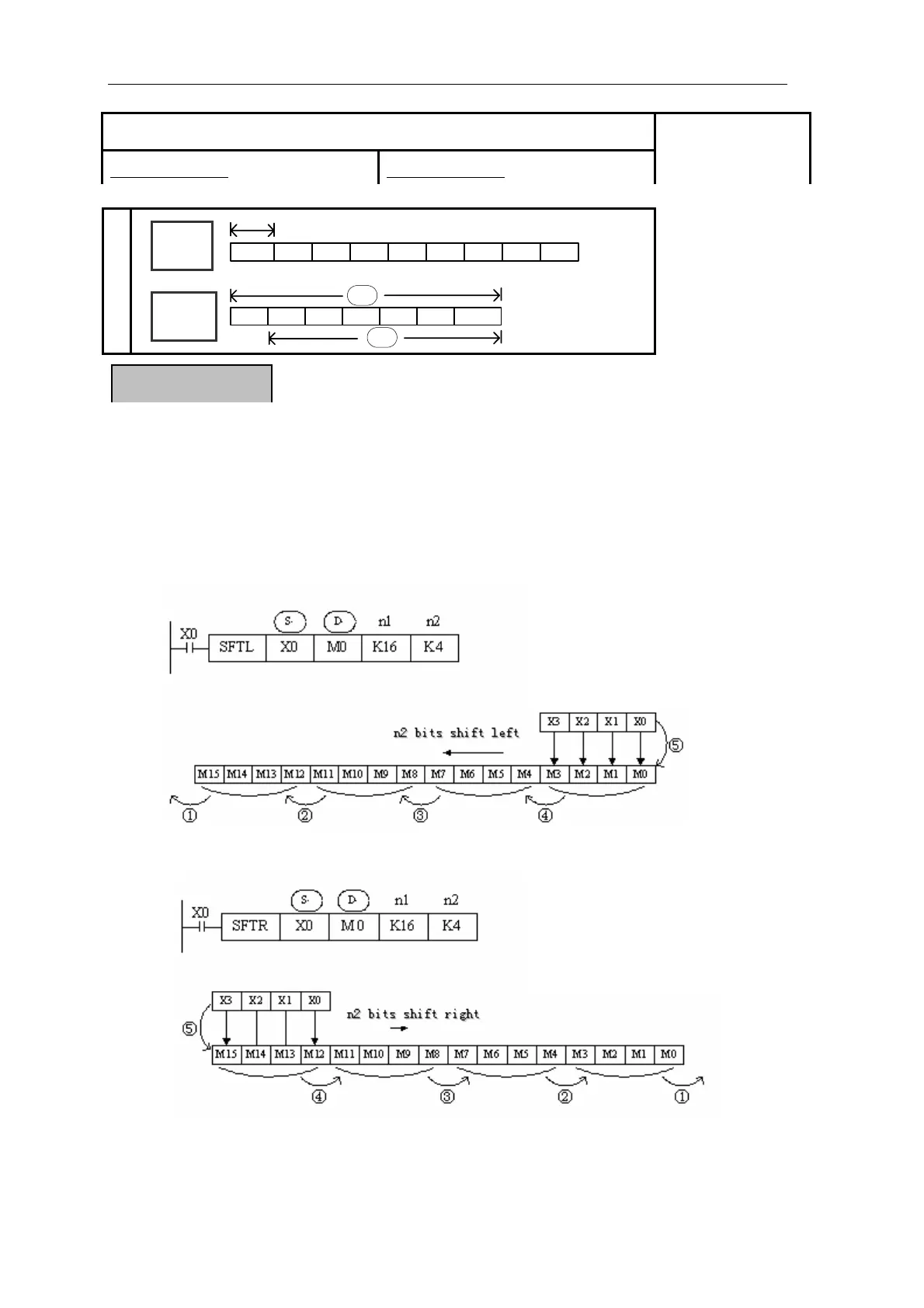 16 bits instruction:SFTL、SFTR 32 bits instruction:DSFTL、DSFTR