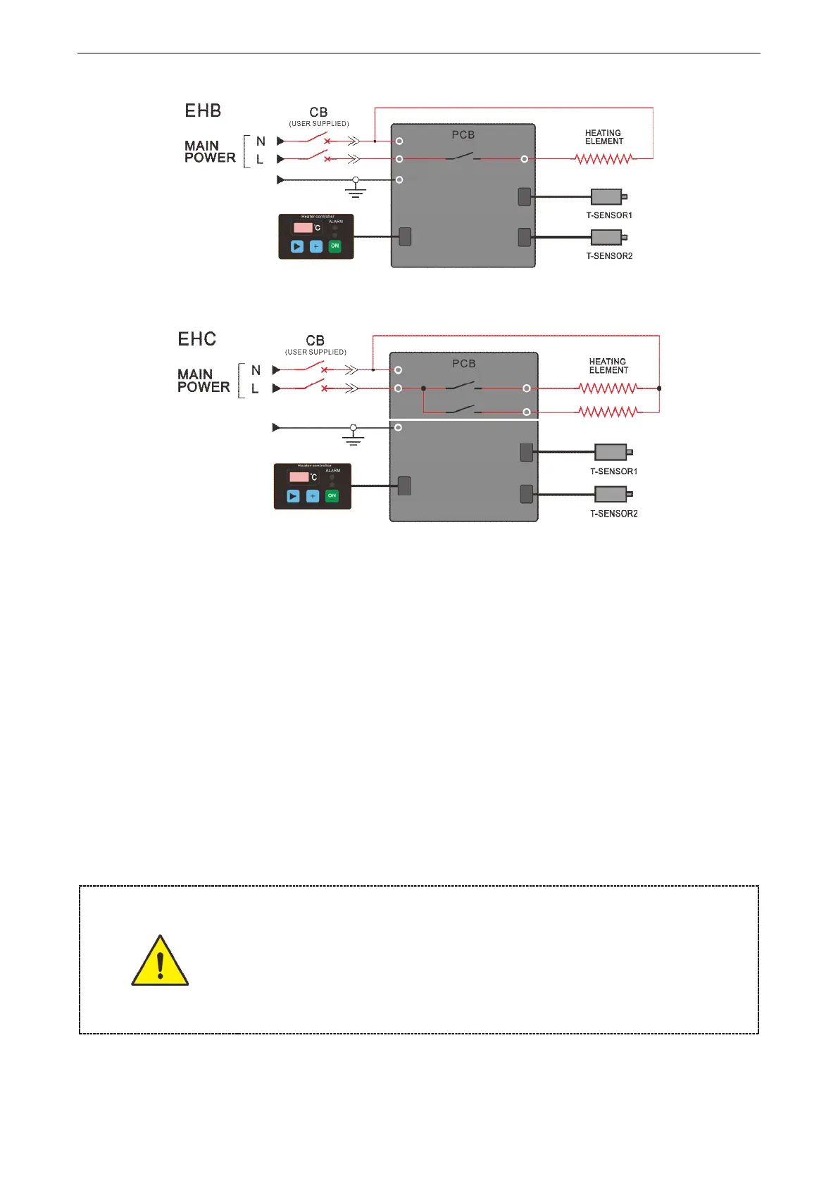 l User according to the power of the heater, select the appropriate main power circuit breaker to