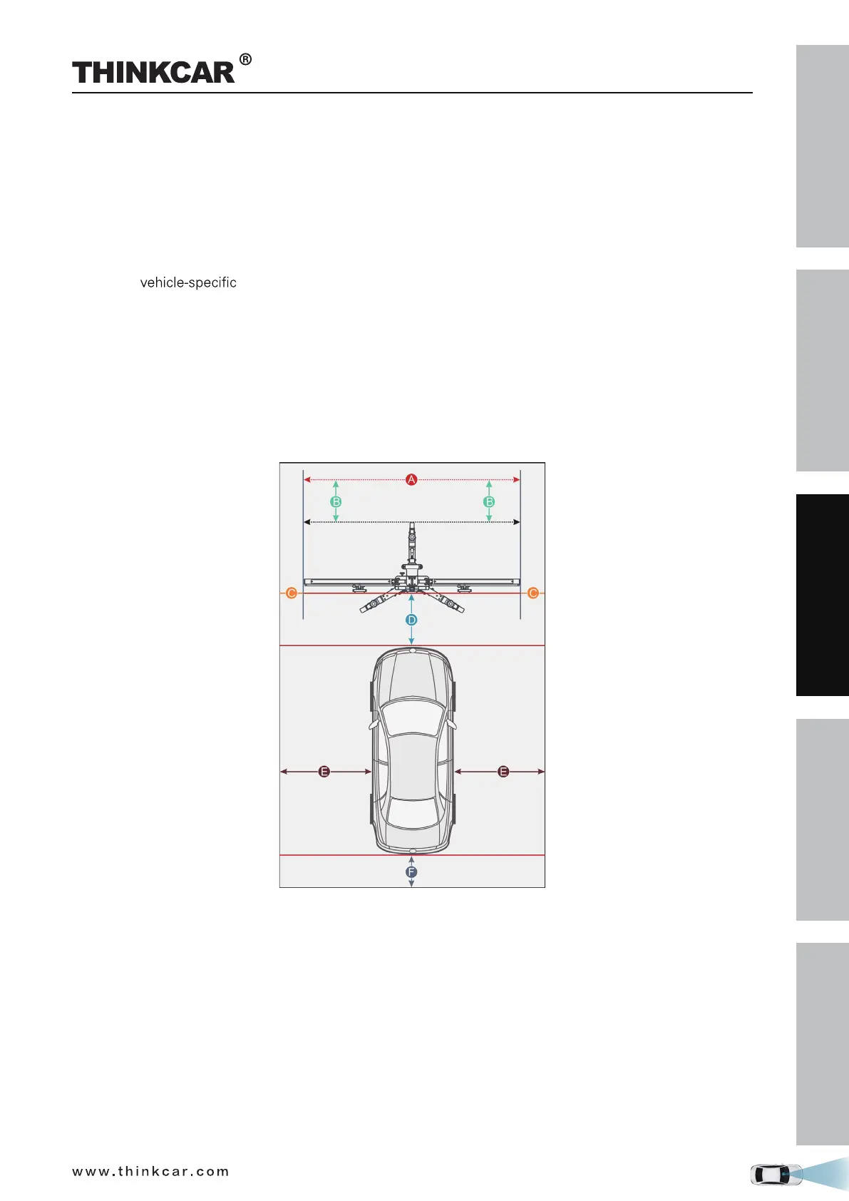 Distance E = reserved for about 1m / 39.4inch (from the vehicle to other obstacles)