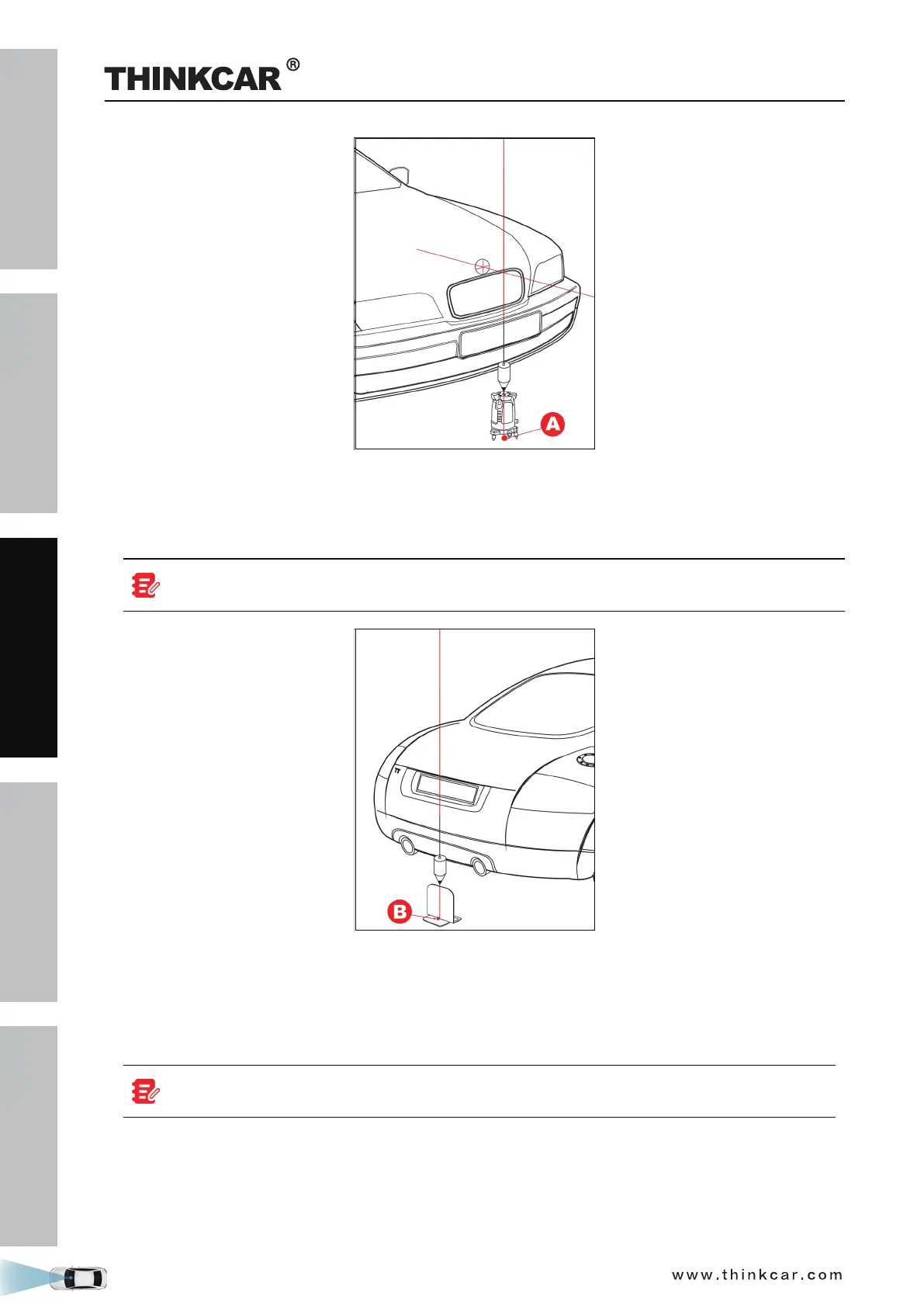 the ground. Mark the front center point of the vehicle (Point B) on the ground directly under the plumb.
