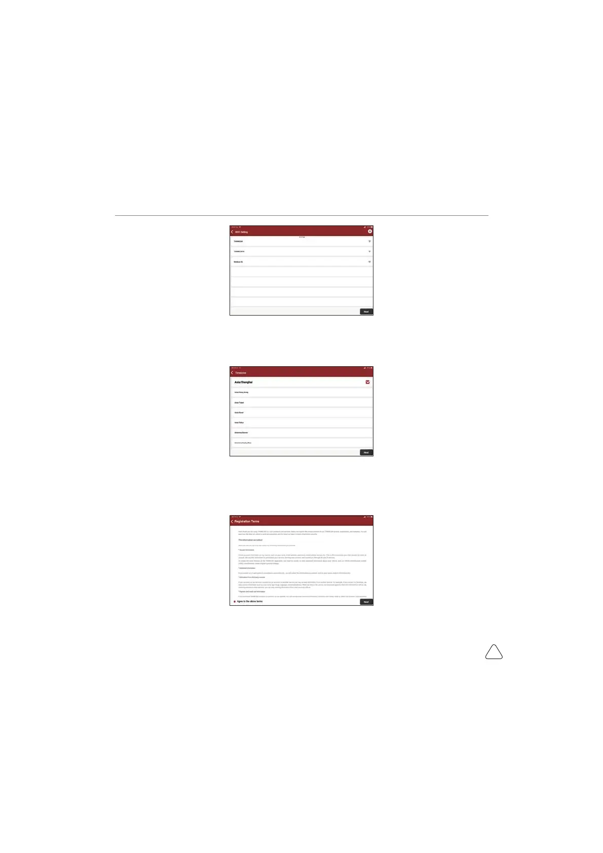 Thinkcar Pros+ - Choose Time Zone; User Agreement; Create an Account