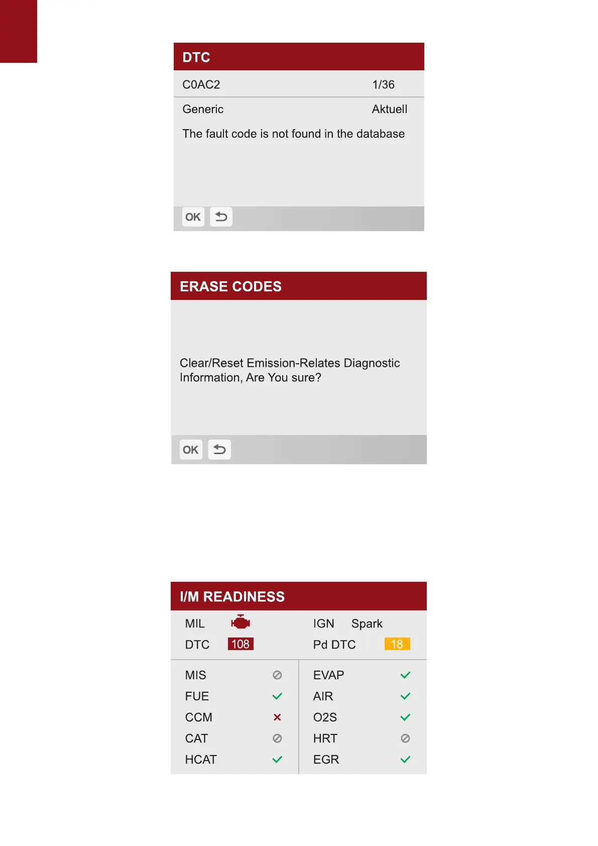 1.3 Select” I/M READINESS” and click "OK" to view the I/M data ow.