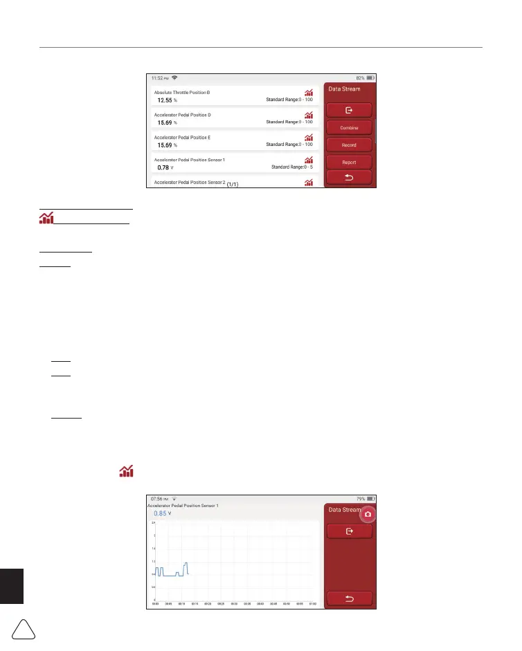 注意 : データストリームの値が標準値の範囲内にない場合、データストリームは赤字で