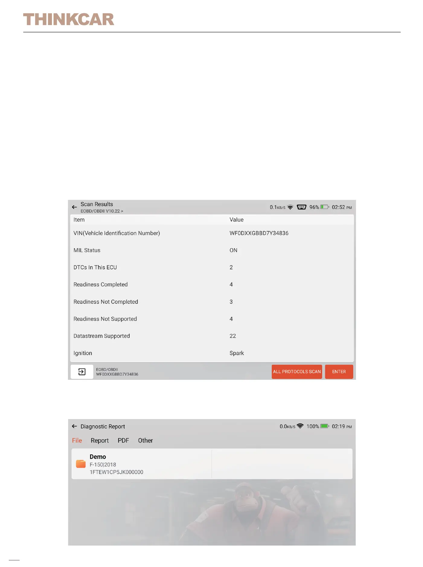 The diagnosed vehicle records will be displayed here. Click to view the
