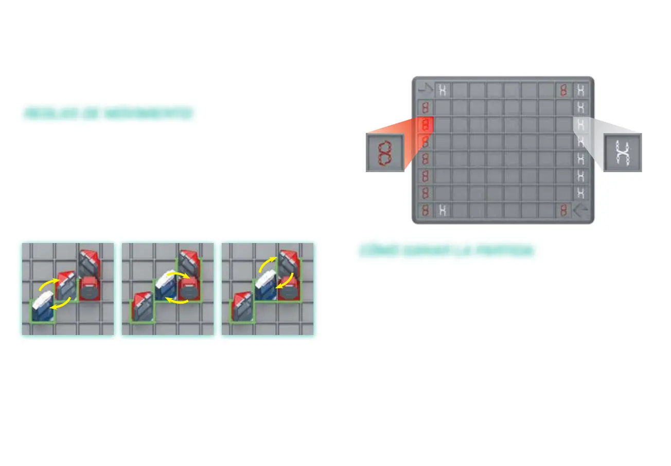 4. Las piezas rojas/grises nunca pueden moverse a las casillas marcadas con