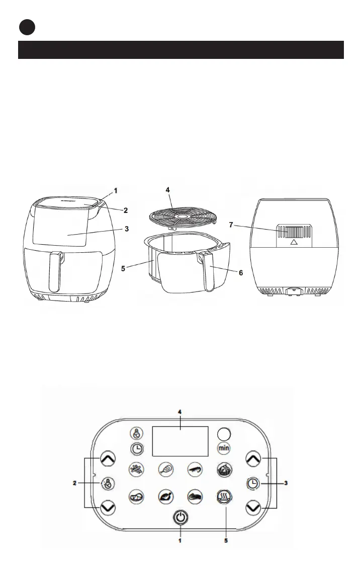 Thinkkitchen CRISPY FRY - Parts and Functions; Air Fryer Components Identification; Control Panel Functions