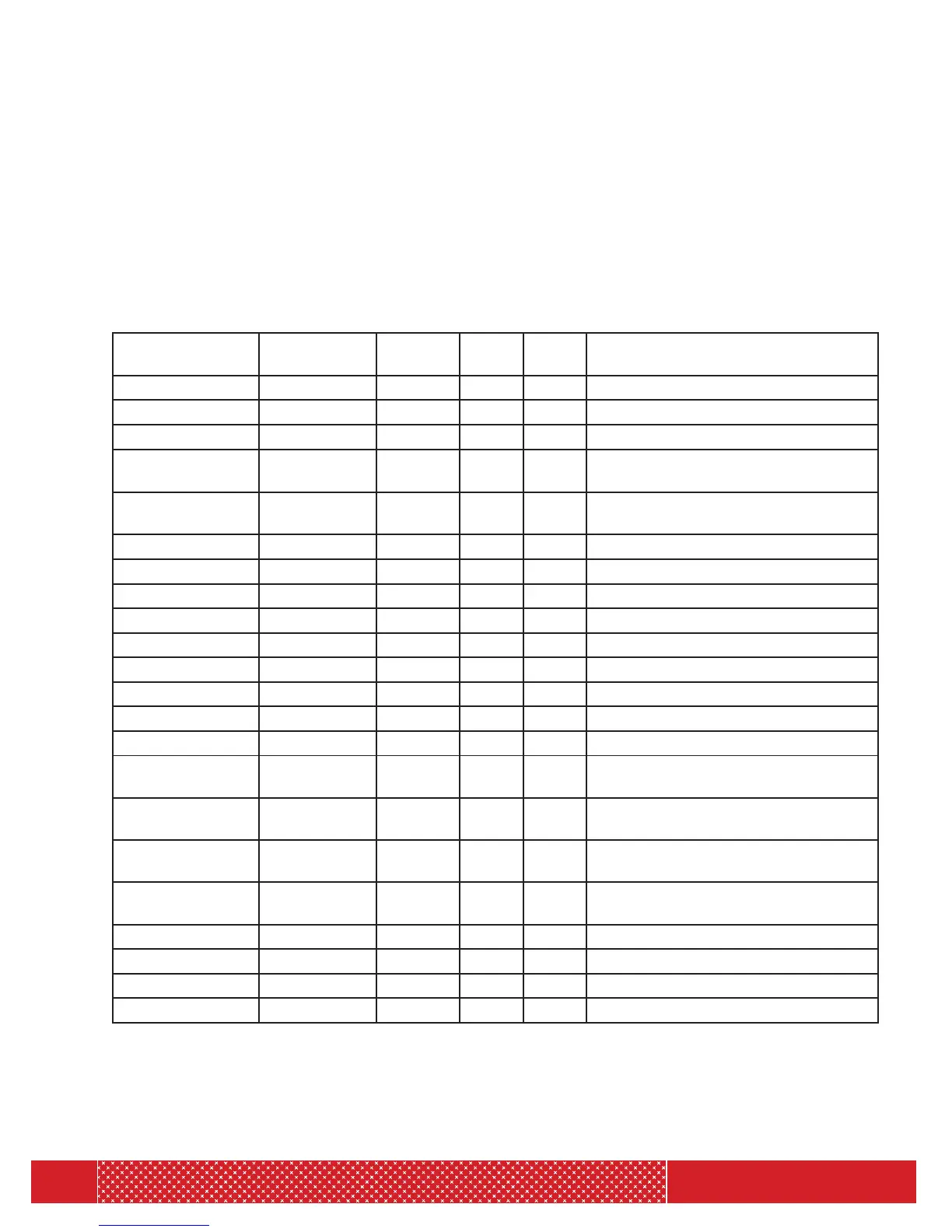 NOTE: This table is only a guide and does noit contain exact recipes.