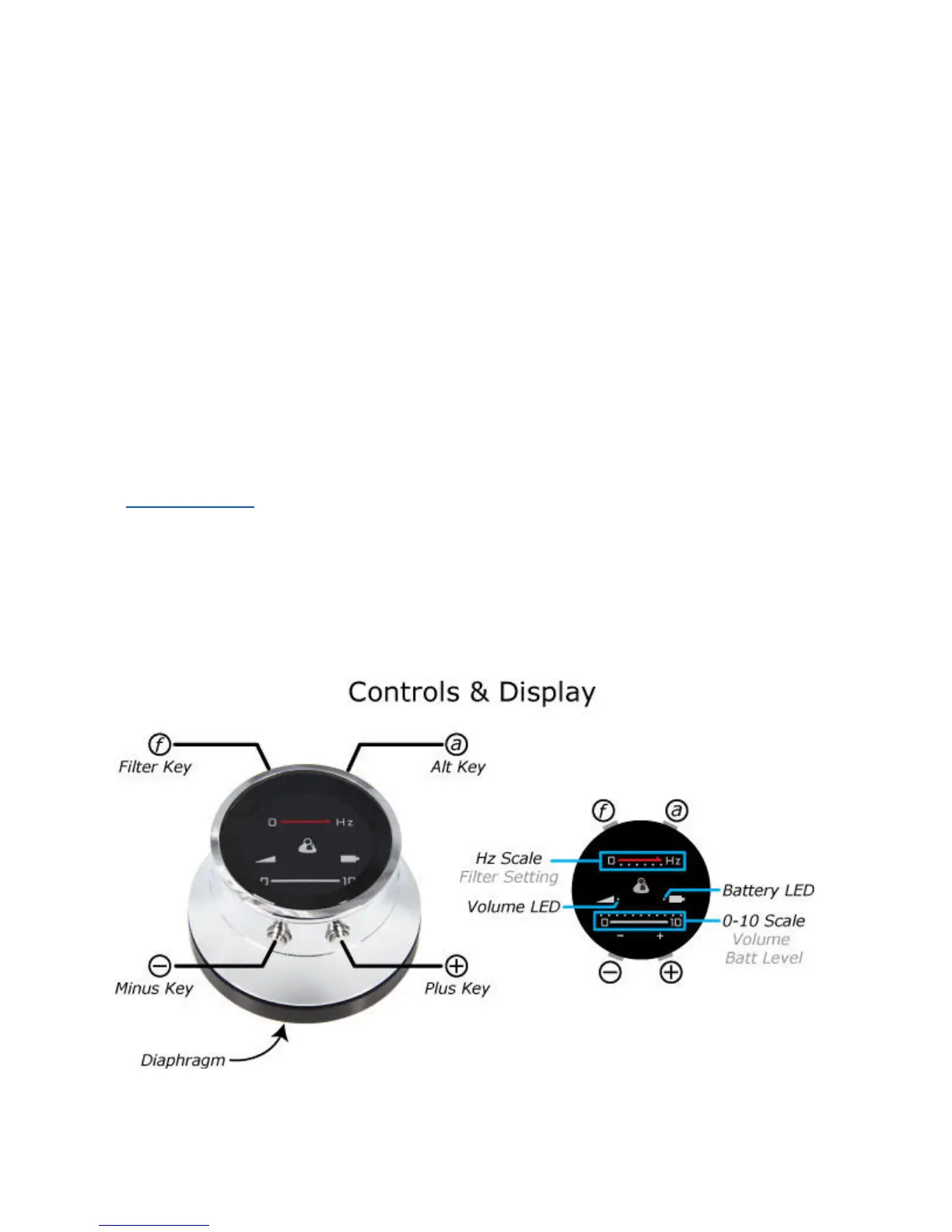Controls are shown below. Four keys control Volume, Filter Selection and other