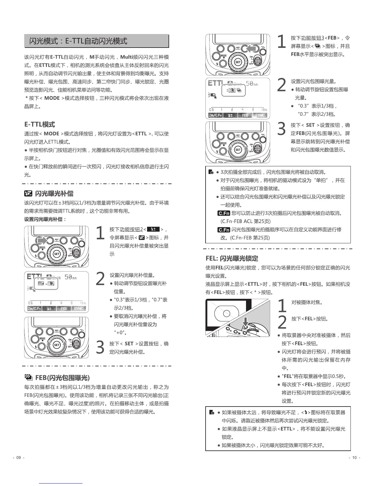 Thinklite TT685C - Flash Mode - E-TTL Autoflash; ETTL Mode; FEC: Flash Exposure Compensation; FEL: Flash Exposure Lock