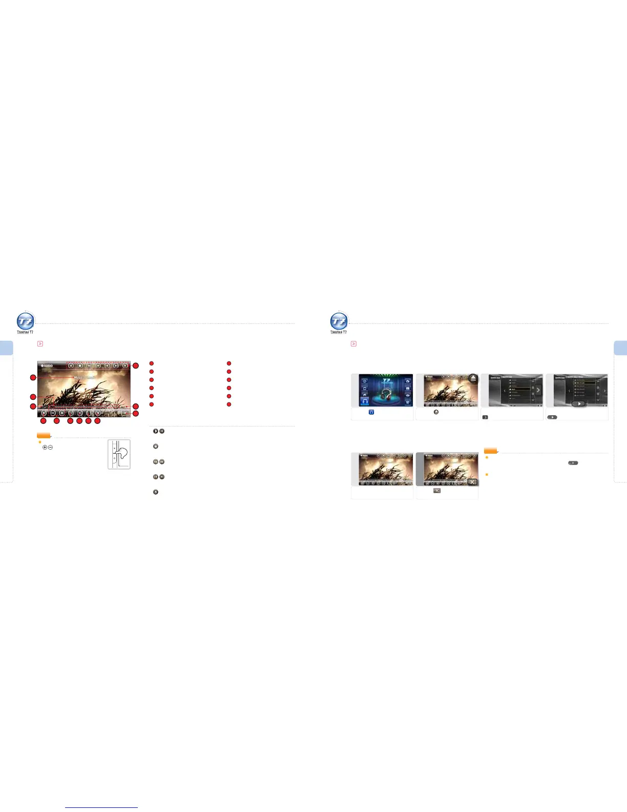 To play an audio le or pause during playback.