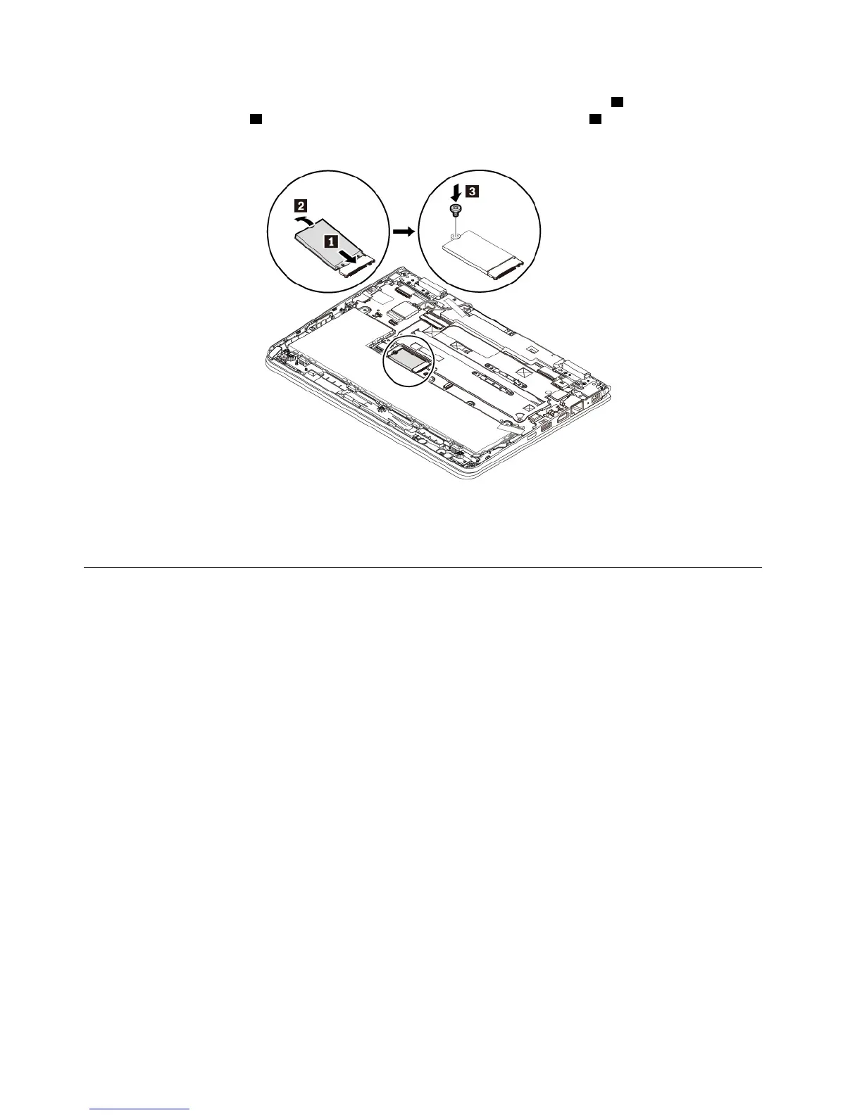 2 . Install the screw to secure the M.2 solid-state drive 3 .